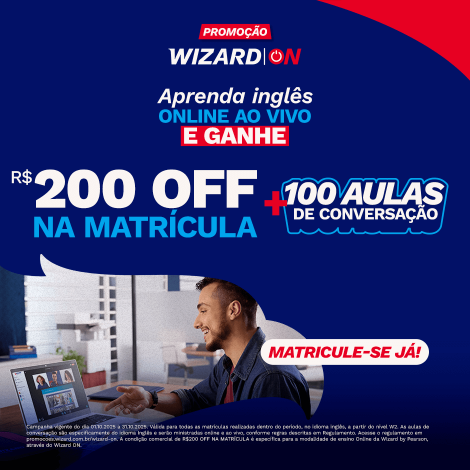 Aprenda inglês online ao vivo, de onde quiser, com a metodologia exclusiva Wizard by Pearson que te ajuda a atingir seu potencial de aprendizado, construindo sua confiança para falar em um outro idioma. Os resultados são concretos e visíveis no seu dia a dia.