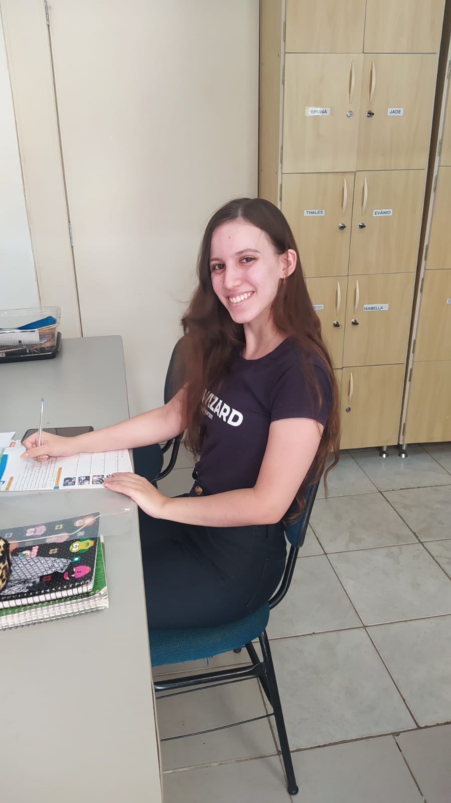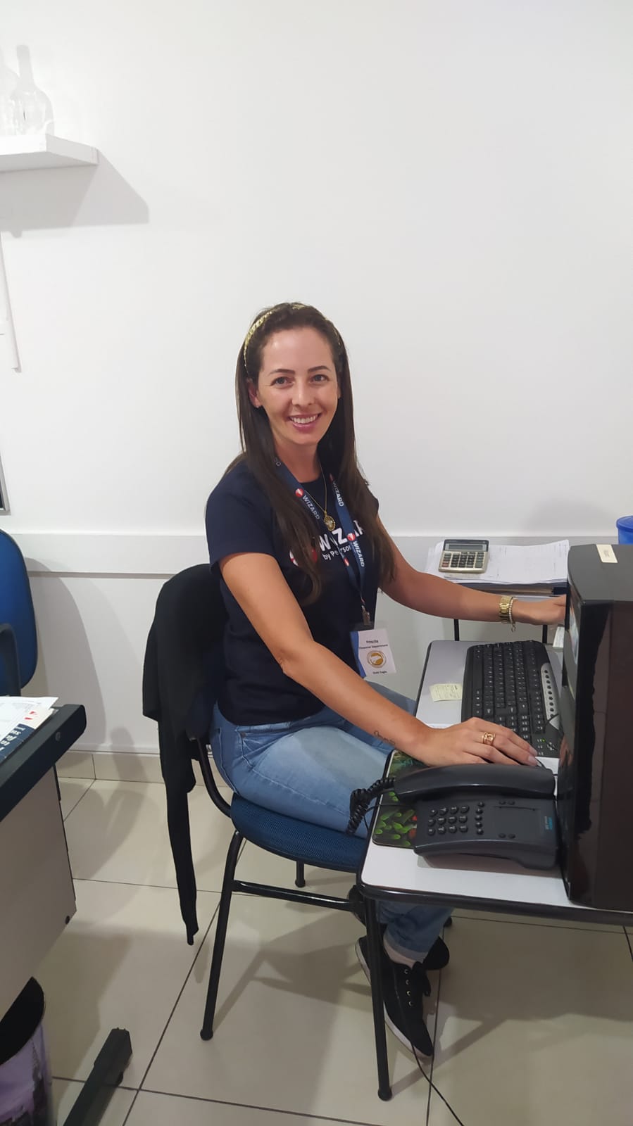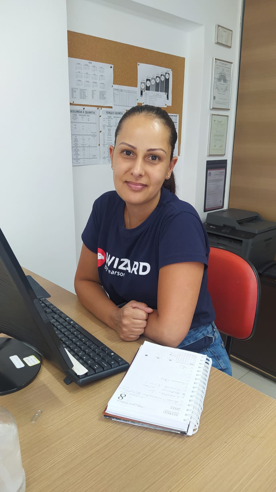 Ela tem 39 anos e está na escola desde 2001. Tem uma filha que se formou em inglês na Wizard Divinópolis. É uma pessoa muito disposta e prestativa e está sempre auxiliando em todos os setores da escola. Possui bacharelado em Administração de Empresas ,certificado Top Manager e certificação da brigada orgânica do Corpo de Bombeiros de Minas Gerais.