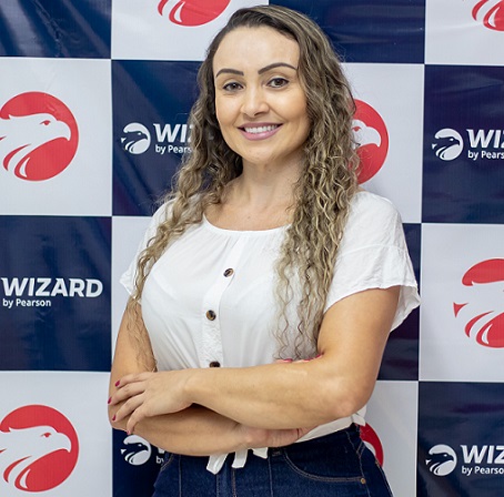 Morou em Londres durante 4 anos e ministra aulas na Wizard há 10 anos , atualmente além de professora, também atua como Coordenadora Pedagógica.