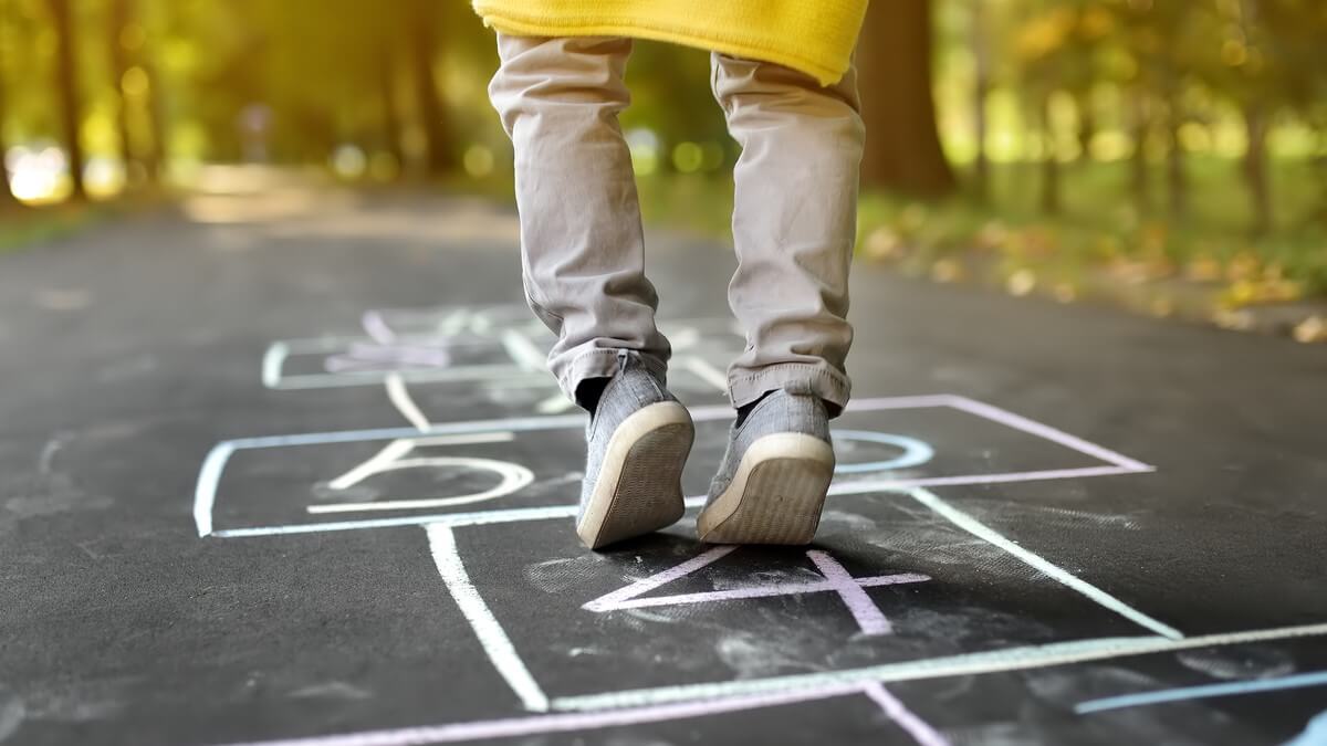 É uma ótima brincadeira para ser feita ao ar livre, basta encontrar um local confortável e desenhar com o giz no chão, um processo que também pode envolver a criança.